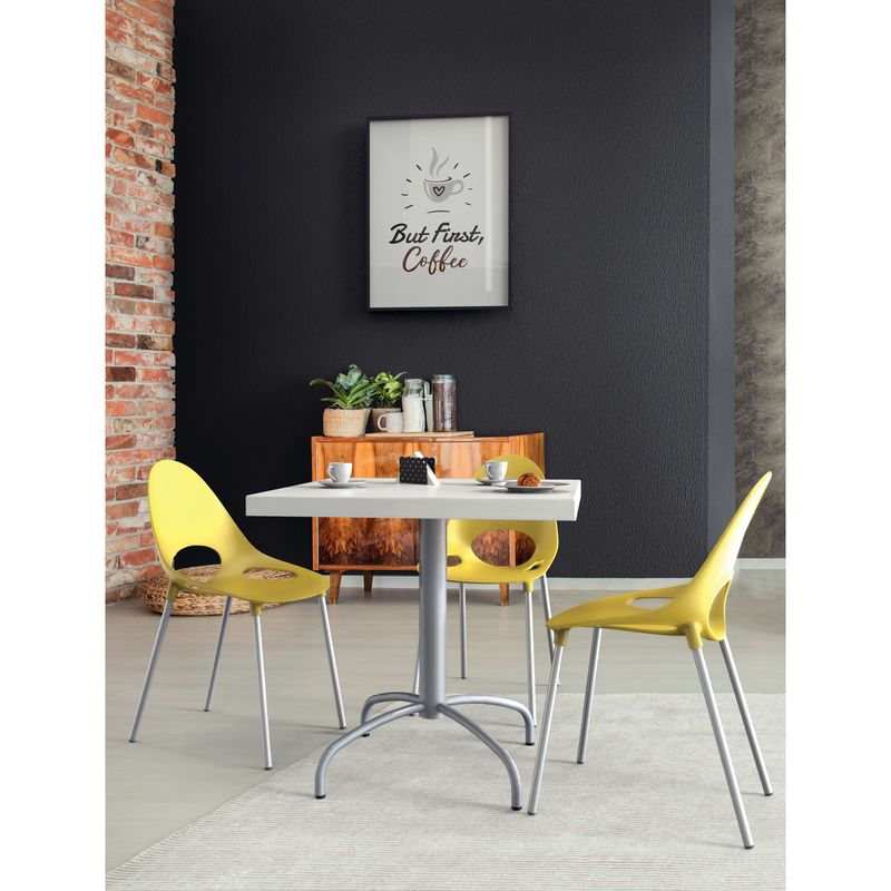 Más color y estilo para su casa con la silla Tramontina Elisa en polipropileno amarillo con patas de aluminio anodizado. Con capacidad de hasta 120 kilos y un diseño moderno y versátil, combina b... Ver más detalles